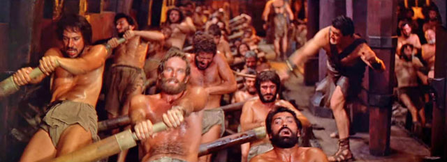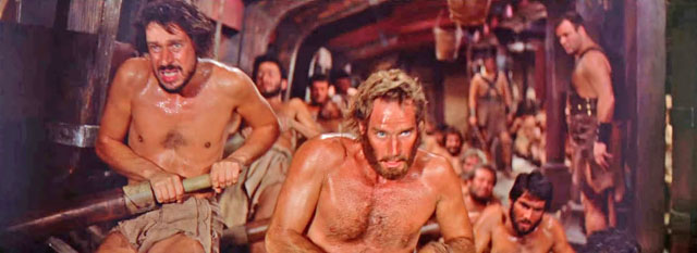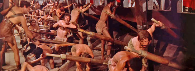 „Sweat runs down the back. The slaves moan on the oars. They push the straps forward. The rudder blades slide down onto the water, submerge. Then the men drop their torso backwards and pull the straps back towards them. They pull the oars out of the water. Without pause the emaciated figures push the belts forward again. Everyone works in one cycle, working like a machine. Drum beats set the beat. If you can not keep the pace, you will feel the whip. The guards thrash their bare backs with full force.“